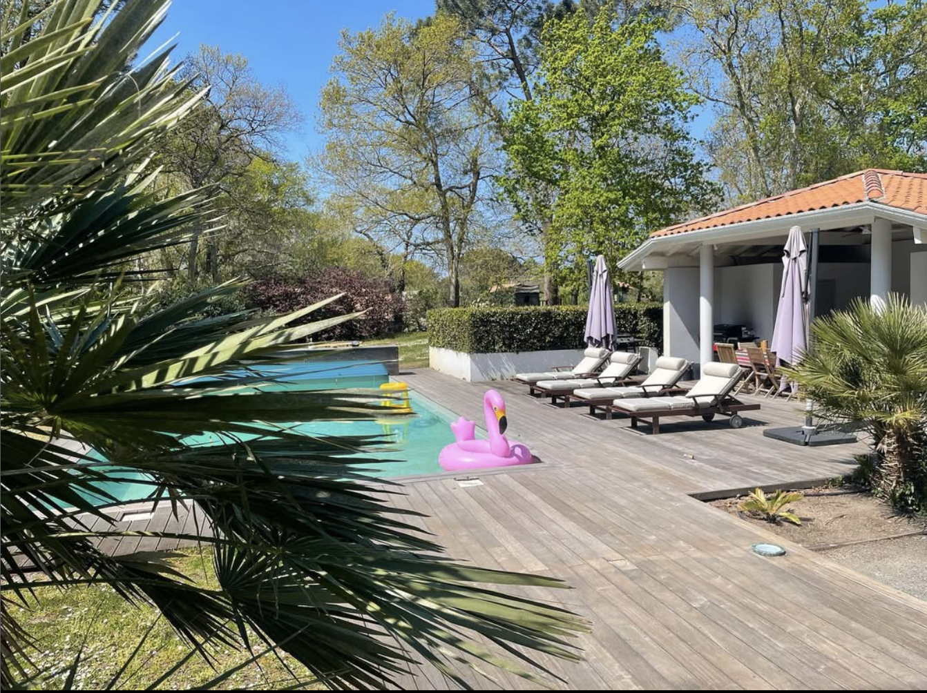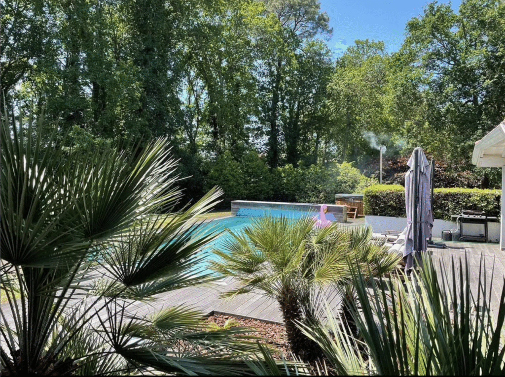 Une villa haut de gamme nichée à Hossegor, véritable havre de paix entouré d’arbres et bercé par le chant des oiseaux. À seulement 10 minutes de la plage, ce cocon offre tout ce dont vous rêvez :